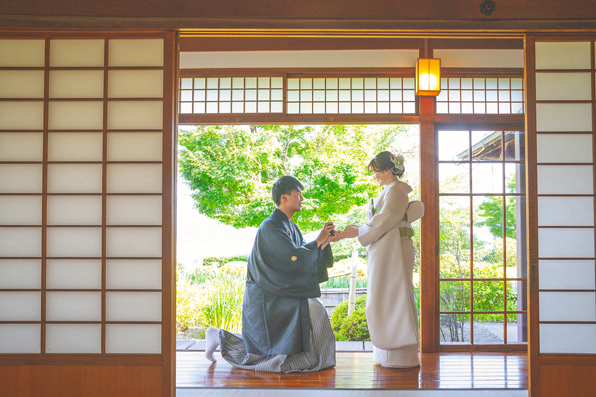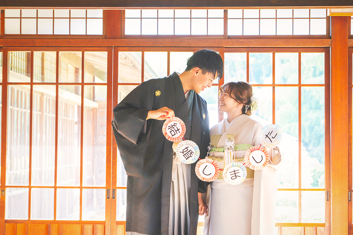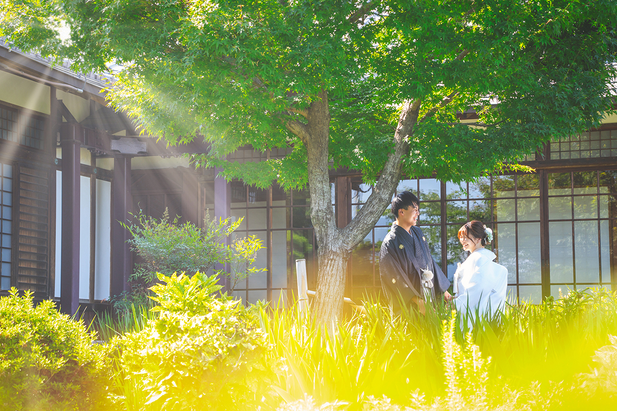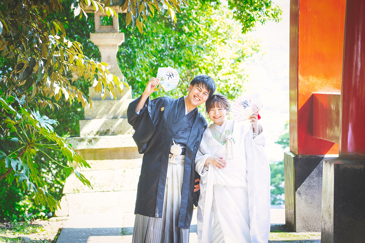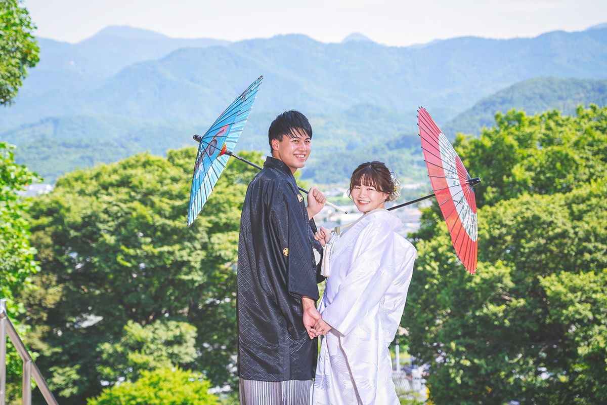 HOME > 貫前神社ロケーション前撮り|群馬のフォトウェディング 和装は貫前神社がお勧めな理由 貫前神社では大きな赤い鳥居を背景に撮影できるのが魅力になります。歴史も1500年以上歴史があり、一ノ宮にある最も社格の高いとされる神社です。 鳥居を生かしたダイナミックな写真も撮影。自然光とストロボ光のミックスでプロならではの写真を撮影します。 赤と緑のバランスが程よく撮影できるスポットがあり、楽しい写真の中にも和風な雰囲気で残す事が出来ます。 敷地内は緑に囲まれた場所があるので、新緑を背景に撮影もできます。森の中でのワンシーンも可能です。 price フルデータ、衣装、ヘアメイク、着付け込。衣装の追加料金はありません。 データだけで残す和装プラン¥85,800詳細撮影料金 新郎新婦1着 着付け ヘアメイク データ50カット データと少しアルバムに残すプランETERNITY ¥96,800詳細撮影料金 新郎新婦1着 着付け ヘアメイク データ100カット2面10カットアルバム 貫前神社と旧東國敬神道場で残す写真集プランLUCE ¥116,600詳細撮影料金 新郎新婦1着 着付け ヘアメイク データ150カット20ページ写真集 gallery LINEで聞いてみる撮影場所や撮りたいパターンなど画像を送ってもらって、撮れるかどうかとりあえず聞いてみてください。 資料請求、見学の予約遺影依頼、ご質問等お気軽にお問い合わせください。 お問い合わせ その他のコース 楽山園 紅葉ロケ 旧東國敬神道場 桜ロケ 新緑ロケ スタジオ撮影 2025年10月12日 author